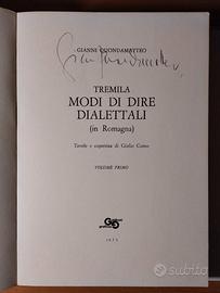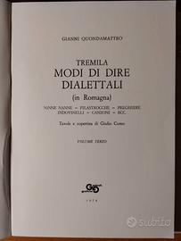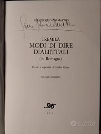 Raccolta completa di 3 libri dal titolo "Tremila modi di dire dialettali in Romagna" di Gianni Quondamatteo. Editore Galeati Imola - 1973/74. I volumi 1 e 2 sono autografati dall'autore. Lo stato dei libri è perfetto, pari al nuovo.