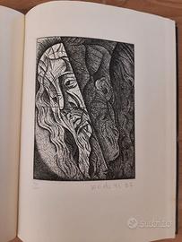 Brani biblici a cura di Brenno Bucciarelli. Introduzione di Luigi Santucci. Con 29 incisioni originali a piena pagina (acqueforti e xilografie), numerate e firmate, di L. Veronesi, C. Bonanotte, C. Magnolato, B. Caruso, F. Beer, F. Bodini, S. Consadori, A De Carolis, G. Hajnal, D. Bellotti, R. Rossi, G. Breddo, L. Bartolini, F. Diamantini, B. Palazzi, V. Guidi, A. Calavalle, G. Macrì, B. Da Osimo, E. Giaroli, A. Manfredi, W. Piacesi, R. Brindisi, A. Ciarrocchi, C. Cattaneo, L. Scorzelli, G. Berto, L. Cardenal, E. Treccani. Le incisioni di Bruno Da Osimo, Adolfo De Carolis e Luigi Bartolini non sono firmate e recano l'autentica del timbro a secco dell'editore Applicata al piatto anteriore un'opera in bronzo dorato di Enrico Manfrini rappresentante la 'Risurrezione'