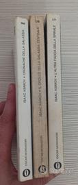 Tre volumi della Trilogia della fondazione di Isaac Asimov. prima edizione Oscar Mondadori 1974
