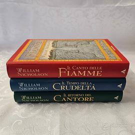 Vendo solamente in blocco la trilogia completa “Il Vento di Fuoco”, scritta da William Nicholson (sceneggiatore di film di successo come “Il Gladiatore”) e pubblicata da Mondadori. Fuori catalogo.