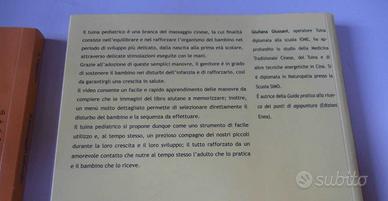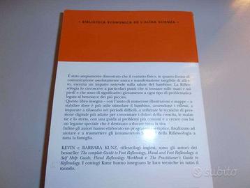 - "Il massaggio infantile. Una tecnica antica per il benessere del neonato", Sabina Oggioni. E' un insieme di semplici gesti che contribuisce al benessere generale dell'organismo del bambino. Ha origini antiche ed è la continuazione di quel massaggio che inizia nel ventre materno quando il neonato è sospeso nel liquido amniotico. Analizzando il rapporto madre-bambino fin dal momento del concepimento e soffermandosi sull'evento del parto e sull'esperienza che il neonato vive a contatto con un nuovo ambiente, l'Autrice offre inediti spunti di riflessione e, con l'ausilio di numerose fotografie e in accordo con l'evidenza clinica, offre utili suggerimenti per apprendere una tecnica alla portata di tutte le mamme. - "Guida pratica al tuina pediatrico", Giuliana Giussani. Una branca del massaggio cinese per equilibrare e rafforzare l'organismo del bambino nel periodo di sviluppo più delicato, dalla nascita alla prima età scolare, attraverso delicate stimolazioni eseguite con le mani. Con queste semplici manovre il genitore è in grado di sostenere il bambino nei disturbi dell'infanzia e di rafforzarlo, così da garantirgli una crescita in salute. - "Riflessologia per i bambini", Kevin Kunz e Barbara Kunz. Il contatto fisico, forma di comunicazione assolutamente unica e manifestazioni tangibile di affetto, esercita un impatto notevole sulla salute del bambino. La riflessologia lo circoscrive a particolari punti che si trovano sulle mani e sui piedi e che sono di significativo giovamento a ogni tipo di problematica legata al benessere dei più piccini. Questo libro insegna con numerose illustrazioni e mappe a stabilire dove è più utile stimolare il bambino, a imparare a rilassarlo nei periodi difficili, a utilizzare le tecniche di pressione digitale più adatte per contrastare dolori della crescita, malattie e stress con una guida ai problemi più comuni e a creare con lui un legame speciale che è destinato a durare tutta la vita. Libri come nuovi, non fruiti (magazzino).