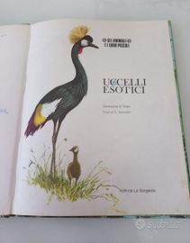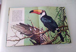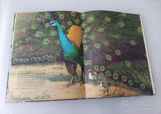 Uccelli Esotici. Volume illustrato che fa parte della collana "Gli animali e i loro piccoli", pubblicato dalla casa editrice La Sorgente. Illustrazioni di Nemo. Testo di L. Innocenti. Copertina rigida. Anno 1967. Pagine 26. Lingua italiano. Peso grammi 550. Condizioni ottime, segnalo prima pagina interna con scritta a penna dedica su intera pagina ( VEDI FOTO ). Volume d'epoca. La copertina presenta splendide illustrazioni di uccelli tropicali, tra cui spicca una Paradisea (Uccello del paradiso) sulla sinistra e un pappagallo sulla destra che accudisce i propri piccoli nel nido. Contenuto: Illustrazioni naturalistiche dettagliate dedicate alla vita e alla cura della prole di varie specie di uccelli esotici.