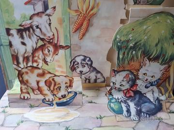 UN CANE BIRICHINO - Libro per bambini - Anni 60 - Copertina semirigida - Quattro scene a rilievo - cm. 24,5 x cm. 17,5 - Qualche macchia di umido solo sui testi (non sulle illustrazioni)