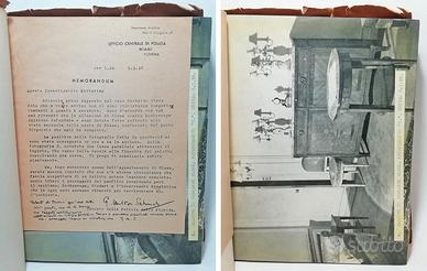 WHEATLEY DENNIS UN DELITTO AL LARGO DI MIAMI. UNA INNOVAZIONE DELLA LETTERATURA GIALLA. USCITO COME SUPPLEMENTO AI GIALLI MONDADORI DEL GIUGNO 1937. MONDADORI, MILANO, 1937 EDIZIONE ORIGINALE (non ristampa) In 8° grande (21x26 cm), composto da 160 fogli con testo al solo verso e con allegati i reperti dell'indagine. Fogli legati con nastro editoriale, brossura con titolo al piatto. Contiene con testo dattiloscritto con i verbali degli interrogatori, fotografie, biglietti e le tracce trovate sul luogo del delitto (buste contenenti Fiammiferi, Capelli, parte di testo della tenda con macchia di sangue). Romanzo impostato come un vero rapporto di polizia. Rottura ai bordi della brossura con evidenti bruniture, alcuni fogli staccati e alone agli ultimi fogli. Nel complesso ben conservato. Euro 80,00 + s.s. LIBRO GIALLO THRILLER ROMANZO POLIZIESCO LETTERATURA #robertolibri 463