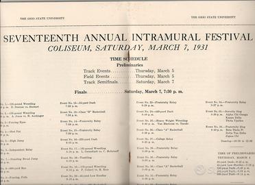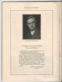 Università dell' Ohio (usa) del 1931. Libro in cui sono descritte e fotodocumentate le attività ginniche degli studenti. Con foto dei dirigenti. degli atleti, dei programmi e risultati delle gare e foto di altri personaggi universitari dell'epoca. Di alto interesse collezionistico.