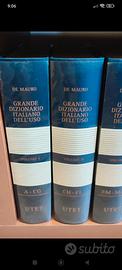 Grande Dizionario Italiano dell'Uso, UTET, 6 volumi più uno con nuove parole italiane, con due CD-rom, legatura tela blu, copertina rigida e sopracoperte trasparenti, ottime condizioni, solo parte superiore dei libri leggermente ingiallite
