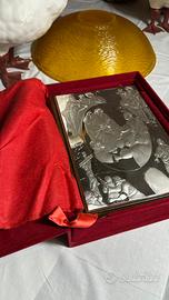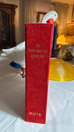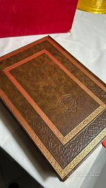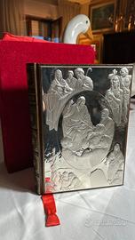 Un capolavoro di devozione, arte e manifattura da collezione Metto in vendita un volume raro e di straordinario valore artistico e spirituale: il Vangelo d’Arte Saie in copertina con lamina d’argento. Questo esemplare, non comune sul mercato antiquario, è una testimonianza mirabile della tradizione editoriale di SAIE – Editrice San Paolo, concepito per chi cerca non solo una Sacra Scrittura, ma un oggetto d’arte da custodire con devozione. Caratteristiche principali •Testo: I quattro Vangeli secondo la traduzione liturgica approvata dalla Conferenza Episcopale Italiana, affiancati da sezioni con le letture festive dell’anno liturgico. •Iconografia: Il volume è riccamente illustrato con immagini sacre e opere di stile iconografico moderno, che conferiscono al testo non solo lettura ma contemplazione. •Rilegatura di pregio: La copertina è ornata da una lamina d’argento a rilievo, finemente lavorata, che non solo impreziosisce l’oggetto ma lo trasforma in un vero simbolo di devozione e collezionismo. La lamina conserva la luminosità tipica dell’argento e crea un contrasto elegante con il volume stesso. •Tattilità e qualità: Le pagine, stampate con cura su carta di alta qualità, sono rifinite con taglio dorato e dettagli che rimandano alle grandi edizioni d’arte sacra. •Condizioni: Esemplare con custodia intatta, ideale per esposizione oppure per ampliare una collezione di testi sacri di pregio. Più di un semplice libro: un oggetto che intreccia arte, fede e storia. La preziosa copertina in argento lo distingue nettamente dalle edizioni standard, rendendolo adatto a collezionisti, amanti dell’arte sacra e chi desideri custodire nelle proprie mura qualcosa di unico. È perfetto come pezzo espositivo, regalo solenne o testimonianza di valore per occasioni sacre. Spedizione accurata.