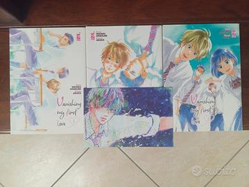 Vendo i primi tre volumi del manga giapponese "Vanishing My First Love", assieme alla cartolina incorporata al primo volume. I volumi sono stati letti soltanto una volta e sono praticamente come nuovi. Li vendo tutti insieme al prezzo di 10 euro. Tengo a precisare che non spedisco, vendo soltanto tramite incontro. Per ulteriori informazioni non esitate a contattarmi.