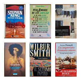 Libri 📚 🟠La svolta dell'America (Gianfranco Piazzesi). M2-4 3 € 🟠La sfida della tigre (Bernand Cornwell). M2-4 3 € 🟠L'ora delle tenebre (Johan Theorin). M2-4 4 € 🟠Stabat Mater (Tiziano Scarpa). M2-4 5 € 🟠Il Canaro della Magliana (Massimo Lugli. Antonio Del Greco). M2-4 5 € 🟠L'amore verrà (Jessica Sorensen). M2-4 3 € 🟠La signora della passione (Lara Adrian). M2-4 4 € 🟠Eve (Flavio Firmo). M2-4 3 € 🟠Un imprevisto chiamato amore (Anna Premoli). M2-4 3 € 🟠Il settimo papiro (Wilbur Smith). M2-4 3 € 🟢 Un matrimonio Americano (Tayari Jones). M2-4 6 € 🟢 Piccole atrocità . Storie di inganni e di peccati (Stefano Brusadelli). M2-4 6 € 🟢 Per amore di un grillo e di una rana, di una chiocciola e di una tigre... (Renato Massa). M2-4 5 € 🟢 Il talismano (Stephen King. Peter Straub). M2-4 5 € 🟢 Una stanza piena di sogni (Ruta Sepetys). M2-4 3 € 🟢 I nostri padri (Karin Brynard). M2-4 10 € 🟢 City (Alessandro Baricco). M2-4 3 € 🟢 Voglio tutto di te (Maisey Yates. Caitlin Crews. Kate Hewitt). M2-4 4 € 🟢 La passione secondo Thérèse (Daniel Pennac). M2-4 5 € 🟢 Il signore della vendetta (Lara Adrian). M2-4 4 € Se interessati a un titolo contattarmi in privato che creerò annuncio in base ai titoli scelti.