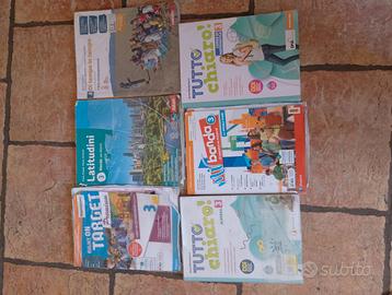 V e n d o libri usati delle scuole medie LIBRI USATI SCUOLA MEDIA UGO FOSCOLO Classi 1^, 2^ e 3^ e triennali: CLASSE 1^ Mito ed epica 1 INGLESE: Right on target 1 Chiodini, Kelly, Worman + Right on target 1 easy learning EAN: 9788883394904 SCIENZE: Scienze Live 1 Leopardi , Bubani, Marcaccio , Luca Perri Editore: TECNOLOGIA ( TRIENNALE ): Tecno.app. Design. Vol. A-B1-B2-B3: Disegno-Settori produttivi Gianni Arduino, Ed.Lattes EAN 9788869173943 MITO ED EPICA: Un libro tutto per me 1 Editore Archimede Cod. EAN: 9788879527545 Impara facile ( Un libro tutto per me ) GRAMMATICA: La grammatica italiana Quaderno di attività Autore: Autore: Della Valle Tutto chiaro! 1 matematica facile Autore: Montemurro Editore : De Agostini + Tutto Chiaro 1! Prontuario ARTE E IMMAGINE ( TRIENNALE ): Artemondo. Volume unico. Emanuela Pulvirenti, Wd.Zanichelli EAN 9788808890771 Classe 2^ STORIA: Di tempo in tempo. Vol. 2: L' Età moderna Paolucci, Signorini, Marisaldi, Ed.Zanichelli EAN 9788808240255 GEOGRAFIA: Latitudini. Europa, regioni e stati. Con Atlante. Vol. 2 Pratesi, Cortesini, Atlas EAN 9788826823591 INGLESE: Right on target.Vol. 2 Chiodini, Kelly, Worman, Pearson Longman EAN 9788883394911 SPAGNOLO: Mi banda. Vol. 2 Fanciullo, Campos, Cabrero, Ana Irene García Pérez, Lang EAN 9788861616882 MATEMATICA: Tutto chiaro! Corso di matematica Vol. 2 Montemurro, De Agostini EAN 9788851160395 Classe 3^ STORIA: Di tempo in tempo. Vol. 3: L' Età contemporanea, Paolucci, Signorini, Marisaldi. Zanichelli EAN 9788808563286 GEOGRAFIA: Latitudini. Mondo. Con Atlante.Vol. 3 Fulco Pratesi, Flavia Cortesini, Atlas EAN 9788826823607 INGLESE: Right on target. Premium edition. Per la Scuola media. Vol. 3 Chiodini, Kelly, Worman, Pearson Longman EAN 9788883395802 SPAGNOLO: Mi banda. Vol. 3 Fanciullo, Campos Cabrero, García Pérez, Lang EAN 9788861616899 Matematica: ARITMETICA E GEOMETRIA:Tutto chiaro3 ! Aritmetica EPICA:Le trame del mito. Con ebook. EAN 978-88-6889-445-0
