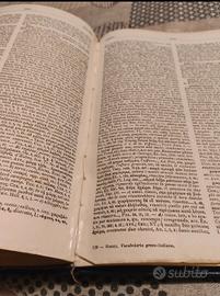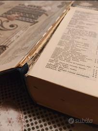 1981 Di Lorenzo Rocci Società Editrice Dante Alighieri Copertina anteriore e posteriore in buono stato. Presenti macchie gialle sulle prime due pagine. Presente evidente scollatura One da foto tra pagina VI e VII. Alcuni segni di evidenziatore alle pag 1403 e 1404 come da foto. La pagina 2049 è stata attaccata con del nastro adesivo trasparente. Alcune scritte a matita e penna nell' ultima pagina bianca. Il resto delle pagine sono ok. Tutto sommato per la sua età è un vocabolario che può ancora dare delle soddisfazioni. Se avete bisogno di un vocabolario senza troppo fronzoli questo Ricci fa al caso vostro. Prezzo leggermente trattabile.