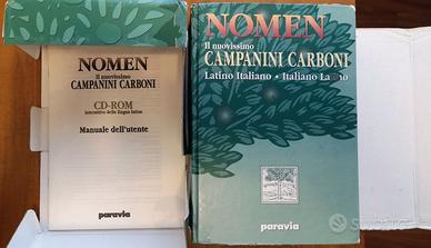 Vendo Vocabolario lingua latina NOMEN Campanini Carboni in perfette condizioni, con box contenitore e CD-ROM di Campanini Carboni con 2300 pagine 50.000 voci latine, oltre 300 riquadri riassuntivi di nuova concezione, oltre 200 segnalazioni di pericolo di errore, marcatura delle 1600 parole latine più frequenti, indicazione precisa dei passi citati, 11 glossari storico-antiquari.