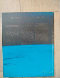 Volume "Grande Atlante del Mondo" completo di mappe geografiche dettagliate che comprendono indici toponomastici, sezioni tematiche e introduzioni e testi esplicativi.