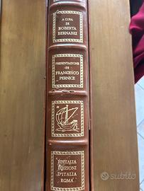 - Rilegatura in tutta pelle pregiata con copertina a sbalzo, borchie di rame sul retro, dorso con nervature e impressioni in oro zecchino, battitura « fiorentina » dei fogli per impedire l’accumulare della polvere