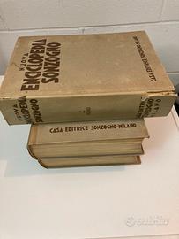 Tre volumi enciclopedia Sonzogno risalenti probabilmente al dopo guerra al massimo anni ‘50. Due volumi presentano strappi nella copertina. Le pagine interne risultano integre. Assenza di odori di muffa con presenza di segni del tempo sulle copertine ed evidenziati dalle foto. Peso 9 kg ca.