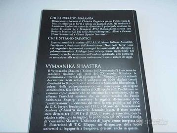 1) "Vymaanika shaastra. L'antico libro delle navi volanti " di Maharishi Bharadwaaja, curato da C. Malanga e Stefano Salvatici. Il Vymaanika Shaastra (Scienza dell'Aeronautica), testo in sanscrito risalente agli inizi del XX secolo, riferisce della costruzione e dei metodi di pilotaggio dei "Vimana", mitici velivoli descritto nei testi vedici, oggi associati ad UFO ante-litteram. Il testo è composto da 3000 shlokas (versi) ed è attribuito a Maharishi Bharadvaja. I cultori della paleoastronautica e dell'ipotesi degli "Antichi Astronauti" hanno atteso invano decenni una versione italiana che copre una lacuna del panorama editoriale di settore. Secondo la storia che lo accompagna, il Vymaanika Shaastra fu fu raccolto da Pandit Subburaya Shastry, attraverso la pratica divinatoria della canalizzazione e reso noto nel 1952 a Mysore. Questo testo descrive in dettaglio la costruzione delle antiche navi degli Dei indù del Mahabarata, armi sofisticate utilizzate nelle guerre mitologiche presenti nei testi dell'antica India, le cui tecnologie belliche sono incredibilmente simili alle più attuali scoperte tecnologiche di questi ultimi 70 anni di storia. Nel 1973 il testo originale fu integrato con illustrazioni di T.K. Ellappa, un ingegnere dell'Università di Bangalore, che replicò i Vimana secondo quanto presente nei versi originali. Tali illustrazioni sono presenti anche in questa edizione italiana. 2) "Gli UFO nella Mente" (contenuto visibile nell'annuncio "Corrado Malanga, UFO + 6 Giorni sulla Terra"). 3) "TCT. La coscienza ritrovata" Il libro riporta i risultati di una ricerca trentennale dell'Autore su chi siamo e su quale sia lo scopo della nostra esistenza con una metodologia sicura e testata sperimentalmente per acquisire consapevolezza del proprio sé dal nome Triade Color Test (TCT) Dinamico Flash (x tornare ad essere Coscienza Integrata, unica vera essenza dell'Universo). I libri sono non fruiti, come nuovi (magazzino). Altri libri di C. Malanga nel canale.