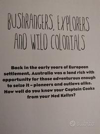 Il testo descrive il libro "How Well Do You Know Australia?"(Quanto conosci bene l'Australia?), un libro di quiz divertente e irriverente che pone grandi domande sull'Australia, coprendo argomenti che vanno dai fuorilegge ai politici, dagli animali ai monumenti, dai successi sportivi alle star del cinema.