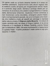 Vendo questo romanzo classico di William Golding. Nel corso di un conflitto planetario, un aereo precipita su un'isola deserta. Sopravvivono solo alcuni ragazzi, che provano a riorganizzarsi senza l'aiuto e il controllo degli adulti. I primi tentativi di dare vita a una società ordinata hanno successo, ma presto esplodono tensioni latenti ed emergono paure irrazionali e comportamenti asociali: lo scenario paradisiaco dell'isola tropicale si trasforma in un inferno.