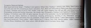 Vendo libro fotografico del grande fotografo William Klein, prima edizione francese della Marval del 2002, 346 pagine, lingua francese, hardcover con sovra copertina. Usato ma in ottime condizioni, solo pochi segni sulla copertina. A disposizione per qualsiasi ulteriore info. Preferibile consegna a mano in zona MIlano. Eventuale spedizione a carico dell’acquirente.