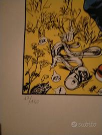 Disegno tratto dalla graphic novel Barokko anche una sorta di parodia di Dylan dog edito da comic art fine anno 80' Per ulteriori info scrivetemi Condizioni, invenduto mostra fondo di magazzino. tecnica utilizzata xilografica dimensioni 70*50 pezzo in vendita durante mostra di Bacilieri del 1993 presso studio 6 di Verona situata in via Cadrega firmato di pugno dal disegnatore limitata in 150 copie disponibilità di più copie possibile vendita in blocco anche per rivenditori. verrà spedito insieme al volantino mostra fiera mentre il foglio di giornale e solo a titolo pubblicitario o informativo. possibilità di presa visione su Siena e provincia
