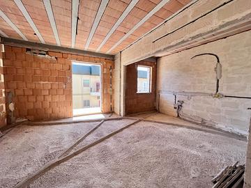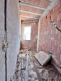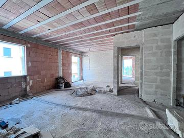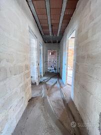 L'intero appartamento è allo stato grezzo con impianto elettrico solo al grezzo, impianto idrico, fognante e termico quasi completi, mancano gli intonaci, i pavimenti, gli infissi.
