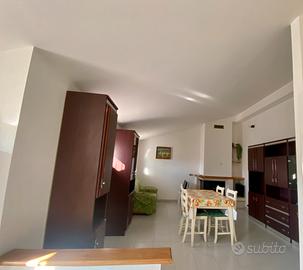 Appartamento in affitto al primo piano indipendente con ampio Living e cucina a vista, due camere da letto matrimoniali, ampio bagno con doccia, enorme terrazzo. Immerso nel verde a 5 min a piedi dal centro cittadino. Zona tranquilla e silenziosa. Dotata di lavatrice, forno microonde, forniture cucina, tv. Ampio parcheggio.