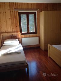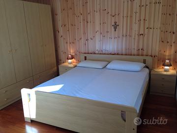 stanza da letto con pavimento in parquet pregiato, salone con angolo cottura, area