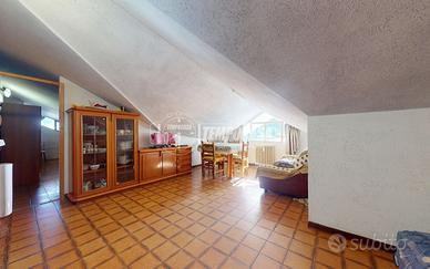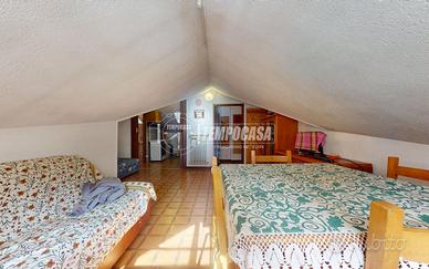 L'appartamento si trova all'ultimo piano di un piccolo contesto condominiale e si presenta con una distribuzione interna funzionale: l'ingresso apre su un disimpegno che conduce a un soggiorno luminoso, una cucina separata di dimensioni contenute, una cameretta e un bagno. Trattandosi di un piano sottotetto, alcuni ambienti presentano altezze ridotte, che tuttavia contribuiscono a creare un'atmosfera raccolta e accogliente, tipica delle abitazioni di montagna.