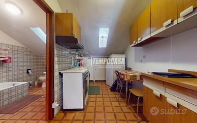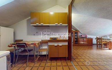 L'appartamento si trova all'ultimo piano di un piccolo contesto condominiale e si presenta con una distribuzione interna funzionale: l'ingresso apre su un disimpegno che conduce a un soggiorno luminoso, una cucina separata di dimensioni contenute, una cameretta e un bagno. Trattandosi di un piano sottotetto, alcuni ambienti presentano altezze ridotte, che tuttavia contribuiscono a creare un'atmosfera raccolta e accogliente, tipica delle abitazioni di montagna.