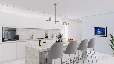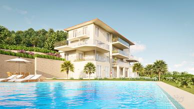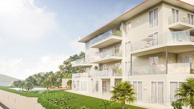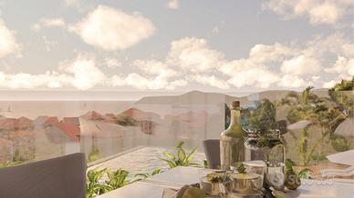 ESCLUSIVO ATTICO - Sanremo, nuova ed elegante realizzazione in classe energetica A. Progetto esclusivo ad uso residenziale di nuova costruzione, circondato da ampi e verdi giardini, a pochi passi dal mare. L'edificio si sviluppa su quattro livelli abitativi ed è costituito da 7 appartamenti di prestigio, dotati di grandi terrazzi panoramici da cui si gode di una splendida vista sul Golfo di Sanremo. Il contesto sorge in posizione invidiabile e strategica, a pochi minuti dal porto turistico Portosole e dalle spiagge della rinomata città di Sanremo, il cui centro cittadino è facilmente raggiungibile a piedi. La bellissima Costa Azzurra e la famosa Montecarlo distano solamente a pochi km di distanza. Nel complesso, che è circondato da ampi spazi verdi, sarà presente una bellissima piscina esterna condominiale privata ad uso esclusivo, con vista mare e area prendisole. Appartamenti dal design innovativo che godranno di grande luminosità e che saranno dotati delle migliori soluzioni tecnologiche ed estetiche, saranno caratterizzati da materiali e finiture di alto livello e capitolato di pregio e da una progettazione interna funzionale e curata nei minimi dettagli. Saranno infine dotati di impianto fotovoltaico e di impianto domotico. Completano il profilo di questo intervento comodi box, predisposti per l'installazione delle colonnine di ricarica per le auto elettriche. In particolare proponiamo in vendita esclusivo e favoloso attico panoramico con terrazzo e bellissima vista mare di 178 mq, con accesso diretto in casa tramite ascensore, composto da un grande soggiorno con ampie vetrate panoramiche, cucina separata, zona pranzo, due camere da letto matrimoniali, due camerette, cabina armadio, due bagni e ripostiglio/lavanderia. Tutte le camere sono dotate di balconi. Dalla zona giorno si accede allo splendido terrazzo di 32 mq con vista sul golfo.
