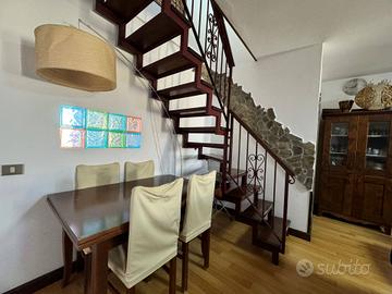 L'appartamento è strutturato su 2 livelli, al piano inferiore troviamo un Ampio Soggiorno con Terrazzo e Camino, Bagno finestrato e Cucina Abitabile con Balcone rivolto verso la città ed il mare. Al piano superiore troviamo la zona notte con le 2 Camere da Letto ed uno Studio con Bagno annesso. Anche su questo livello abbiamo 2 Terrazzi che permettono di godersi le belle giornate e la vista mare.