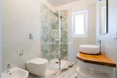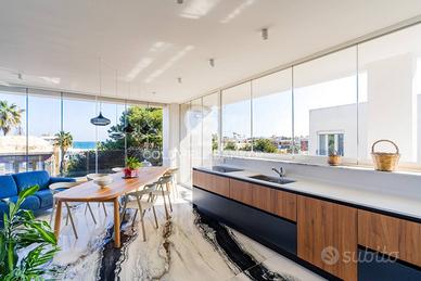 Rif: CBI094-986-64149 Classe energetica: A4 - EPglnr: 0.00 kWh/m² PUGLIA - BARI - SANTO SPIRITO - VIA TARANTO A Bari e più precisamente a Santo spirito, quartiere residenziale con porticciolo turistico, a nord del centro cittadino, in zona di pregio, proponiamo in vendita un stabile di nuova costruzione, a detta di molti il più bello del quartiere, appartamento al terzo ed ultimo piano di rara bellezza. Lattico è composto da ingresso in area living con affaccio attraverso splendide ed ampie vetrate su terrazzo a livello con scenario vista mare. La zona giorno contempla una cucina progettata su misura da maestri artigiani che ne hanno curato la realizzazione nei minimi dettagli rendendola piacevolmente abitabile e vivibile, soprattutto per il punto in cui è stata posizionata. Completa larea giorno un rifinitissimo e comodo servizio. La zona notte si compone di tre belle camere da letto di cui una matrimoniale con bagno dedicato. Lesposizione su tutti e quattro i lati rende limmobile particolarmente luminoso e arieggiato. Una scala in legno realizzata con cura e maestria dai soliti artigiani ci conduce al terrazzo panoramico attrezzato, di oltre 150 mq di cui una parte coperta e indicata per momenti di convivialità con parenti e amici con cui condividere, oltre al relax, la splendida veduta. La soluzione di nuova costruzione è ovviamente dotata di impiantistica di ultima generazione, trovasi infatti in classe energetica A4. Dispone quindi di riscaldamento e raffrescamento a pavimento, deumidificazione canalizzata, impianto fotovoltaico, pannelli solari, infissi in legno laccato bianco con vetro camera, tapparelle in alluminio coibentato. È inoltre rifinito con pavimento iconico ed elegante Panda White mt 3x1,5. Porte artigianali h 2,40 e battiscopa in legno laccato in tinta. Bagni artigianali realizzati su misura con piani in massello di rovere. Vetrate a pacchetto di prima scelta, per poter godere degli spazi esterni in qualsiasi...