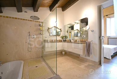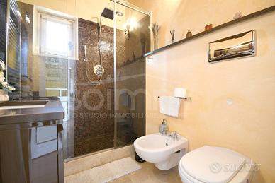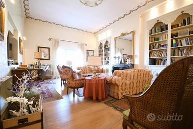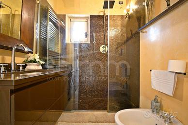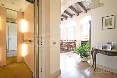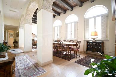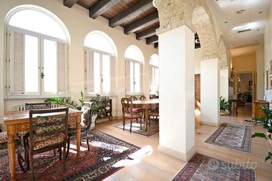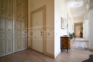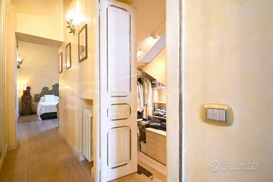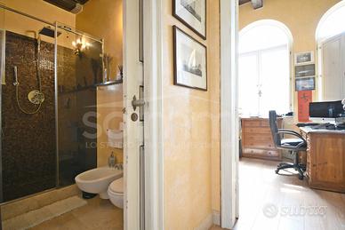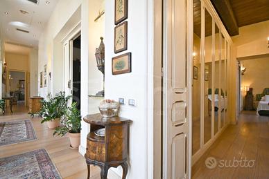 Distribuito su due livelli, lattico accoglie con un luminoso salone arricchito da un pregiato camino ottocentesco in marmo nero francese e balcone con affaccio sul Corso. La zona giorno prosegue con unampia sala da pranzo, una cucina abitabile con tinello e uno studio. La zona notte del primo livello offre due camere padronali, entrambe con bagno privato dotato di sanitari sospesi, cabine armadio e dettagli ricercati.