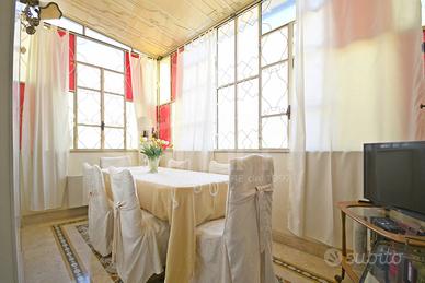 Al livello superiore troviamo un ulteriore soggiorno con cucina separata, due camere da letto e due bagni. Da qui si accede allautentico gioiello della casa: una terrazza di circa 90 mq, dalla quale ammirare una vista mozzafiato a 360° sul mare, i monumenti storici della città e i suggestivi tramonti.