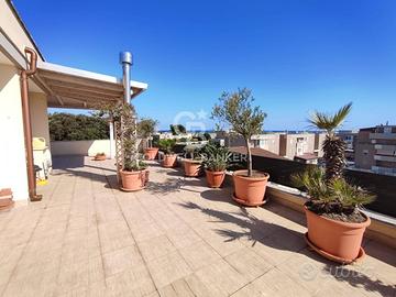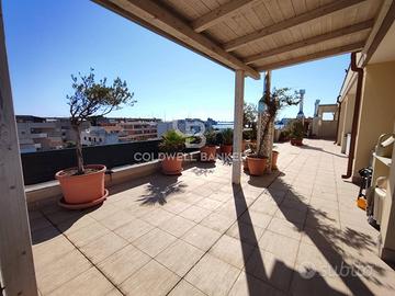 In the quiet and sought-after area of Materdomini, we offer for sale a wonderful renovated penthouse with a garage and 360° sea views. With its 117 sq m interior and a three-sided exposure encompassing a 240 sq m terrace, the property offers breathtaking sea views that enchant at any time of day. The elevator with direct access to the apartment welcomes you into an oasis of tranquility and luxury. The property opens onto an elegant corridor that leads to a bright living area, perfect for moments of relaxation and conviviality; Here you'll find a living room, a functional kitchen, and a guest bathroom. The cleverly separated sleeping area consists of two bedrooms and a...