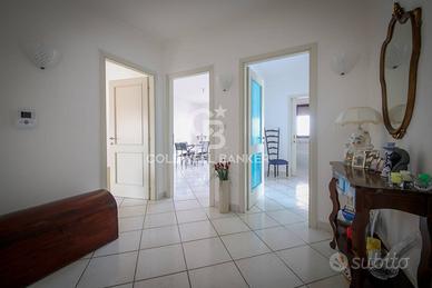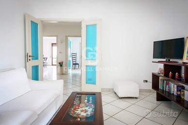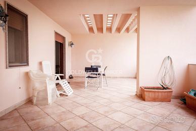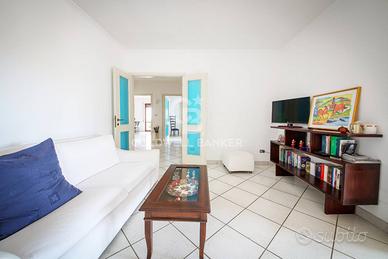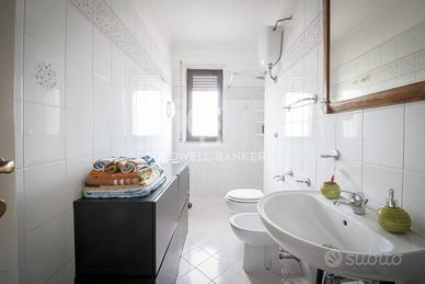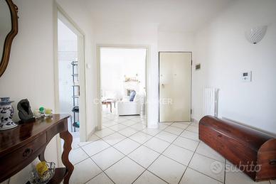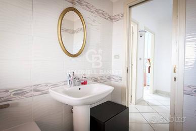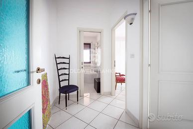 La casa al sesto piano, con ascensore, in un condominio molto curato e tranquillo, è così composta ; ampio ingresso da cui si accede al soggiorno con termocamino, una grande e luminosissima cucina, realizzata in muratura su misura con materiali di pregio, uno studio, tre camere da letto e due bagni.
