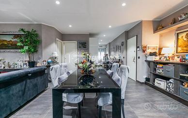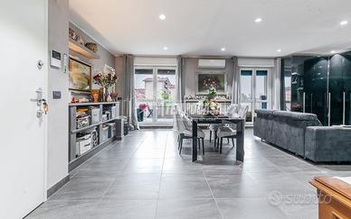 Dal soggiorno si accede direttamente allo splendido terrazzo, vero valore aggiunto dell'immobile, ideale per momenti di relax, cene all'aperto, area lounge o spazio verde privato sopra i tetti della città.