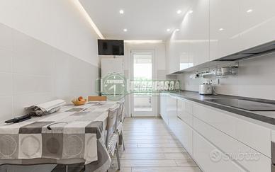 Appartamento di 3 locali sito all'ultimo piano con lastrico solare. L'immobile internamente è così disposto: cucina abitabile, soggiorno con accesso al primo terrazzo esposto a sud, due camere di cui una dotata di un secondo terrazzo due bagni e ripostiglio.