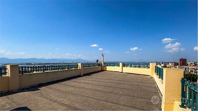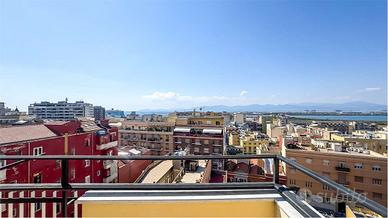 Nella rinomata via Tigellio, nel quartiere storico di Stampace a Cagliari, a pochi passi dal rigoglioso Orto Botanico e dal centrale e vivace corso Vittorio Emanuele II, in una posizione riservata ma al contempo vicina a tutti i principali servizi, proponiamo in vendita un ampio attico con vista panoramica sul porto di Cagliari. L'immobile, sito al sesto piano, si inserisce in un condominio signorile dotato di ascensore che giunge fino all'interno della casa. Internamente si compone di luminoso disimpegno centrale finestrato, cucina abitabile di ampie metrature, bagno e salone di oltre 37 mq dotato di doppia esposizione, camino e balcone di pertinenza; tramite doppia porta finestra si ha accesso alla splendida terrazza a livello di ben 75 mq circa, con vista panoramica sulla città di Cagliari e sul parco della villa Congiu Pattarozzi, storica villa in stile liberty di fine '800. La terrazza è accessibile anche da altre tre aperture del disimpegno e dalla camera da letto matrimoniale. La zona notte si compone invece di tre camere da letto dalle generose dimensioni, di cui due dotate di balcone di pertinenza, servite dal secondo secondo bagno. Dalla terrazza a livello, tramite scala esterna, è possibile accedere al terrazzo sovrastante di pari metratura della casa, con spettacolare vista a 360 gradi sulla città e sul porto di Cagliari. L'immobile, da ristrutturare, presenta riscaldamento con termosifoni e split. Possibilità di acquisto di un box auto con accesso dal Corso Vittorio Emanuele II. Libero da subito, si presenta come l'investimento ideale per chi cerca spazi interni ed esterni importanti, senza rinunciare al comfort dei servizi del centro cittadino. RIFERIMENTO: via Tigellio_attico CLASSE ENERGETICA: D