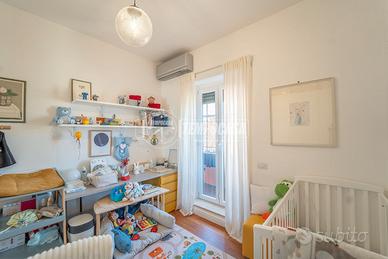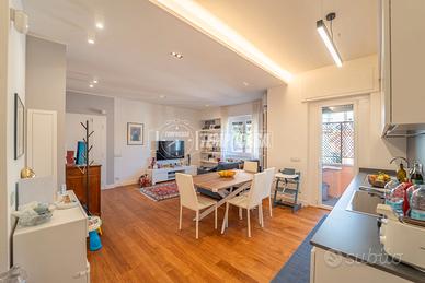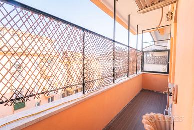 Tempocasa Roma Prati propone in vendita un elegante trilocale situato all'ottavo ed ultimo piano di una curata palazzina in Via Trionfale, dotata di ascensore e servizio di portineria attivo per l'intera giornata. L'immobile, di circa 89 mq, si presenta in condizioni impeccabili, frutto di una ristrutturazione recente e attenta ad ogni dettaglio. L'ingresso conduce direttamente a una luminosa zona giorno con soggiorno e cucina a vista, valorizzata dalla presenza di un'ampia finestra e di una porta finestra che permette l'accesso al comodo balcone. L'affaccio interno garantisce tranquillità e silenzio, con un piacevole scorcio in lontananza sulla cupola. Un pratico disimpegno conduce alla zona notte, dove troviamo un primo bagno finestrato, una camera da letto con accesso diretto al balcone e, sul lato opposto dell'appartamento, una spaziosa camera matrimoniale dotata di bagno en suite. La doppia esposizione, unita al piano alto e alla posizione di ultimo piano, assicura ambienti particolarmente luminosi e riservati. L'appartamento è rifinito con pavimentazione in teak in tutti gli ambienti principali (ad eccezione dei bagni), che dona calore ed eleganza agli spazi. È inoltre dotato di impianto di climatizzazione caldo/freddo in ogni stanza, infissi in PVC con doppio vetro per un eccellente isolamento termico e acustico, porta blindata e sistema di allarme volumetrico e perimetrale su tutte le finestre. Completano la proprietà un funzionale soppalco, ideale come spazio di stoccaggio, e un balcone recentemente rinnovato, perfettamente mantenuto. Soluzione pronta da abitare, ideale per famiglie o per chi è alla ricerca di un immobile chiavi in mano in una delle zone più richieste della città. La posizione è strategica: servita da negozi, servizi e collegamenti, consente di muoversi comodamente a piedi nel quartiere P - Classe: G