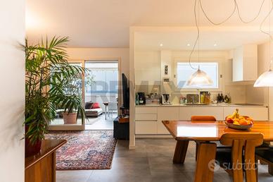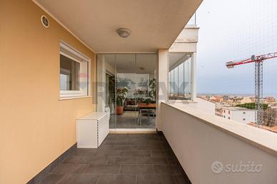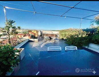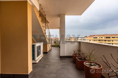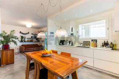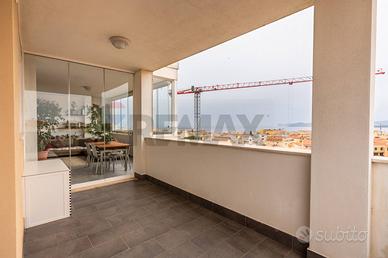 Rif: 41191001-576 Classe energetica: A1 - EPglnr: 68.68 kWh/m² Ad Alghero, in Via Edison, proponiamo in vendita un attico davvero unico nel suo genere, disposto su due livelli (sesto e settimo piano), pensato per chi desidera vivere la casa con spazi esterni importanti e una vista mare spettacolare. Al sesto piano si sviluppa labitazione principale di circa 78 mq, caratterizzata da ambienti luminosi e ben distribuiti: ingresso, soggiorno con cucina a vista, due camere da letto e due bagni. A rendere ancora più speciale questo livello troviamo una splendida veranda completamente chiusa con vetrate, utilizzata come secondo soggiorno. Da qui si gode di una vista straordinaria sul mare e su Capo Caccia: un panorama così suggestivo che sembra di avere davanti un quadro naturale, che cambia colori tra alba e tramonto. La stessa emozione si vive anche dalla finestra della cucina, dove il mare e Capo Caccia si aprono davanti agli occhi: un panorama davvero straordinario che rende unico anche un gesto quotidiano come cucinare, accompagnati da una vista che difficilmente si trova in città. Lappartamento è inoltre circondato da un ampio terrazzo che si sviluppa su tre lati della casa, garantendo grande luminosità agli ambienti e piacevoli spazi esterni da vivere. La proprietà è stata inoltre valorizzata con impiantistica moderna e soluzioni tecnologiche pensate per il massimo comfort abitativo. Limmobile è dotato infatti di sistema di riscaldamento/raffreddamento sia ad aria che con impianto radiante a pavimento, una combinazione che consente di mantenere temperature uniformi e un elevato benessere in ogni stagione dellanno. A rendere la casa ancora più efficiente troviamo un impianto fotovoltaico, che contribuisce alla produzione di energia e alla riduzione dei consumi, migliorando al tempo stesso la sostenibilità e il valore dellabitazione. Completa il quadro tecnologico della proprietà un sistema di domotica, che permette la gestione...