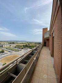 Internamente l'immobile è composto da soggiorno, cucina, camera, cameretta, due bagni e ripostiglio, ampio terrazzo di 73 mq con due ripostigli oltre ad un solarium di mq 37 ca.