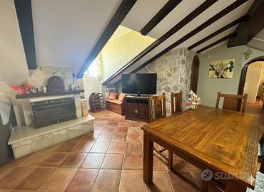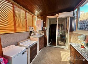 L'immobile si distingue per la sua luminosità e per gli ampi spazi esterni. La zona giorno, particolarmente accogliente, include una cucina in muratura e un termocamino, creando un'atmosfera calda e ideale per la vita familiare. A completare l'ambiente, una grande veranda chiusa a vetri che può essere vissuta in ogni stagione. La casa dispone inoltre di due camere da letto ben distribuite, un bagno finestrato e due comodi terrazzini che offrono piacevoli affacci e ulteriori spazi da sfruttare all'aperto.