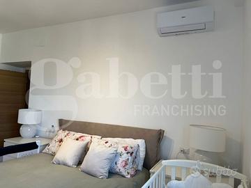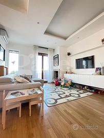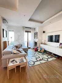L'appartamento è dotato di riscaldamento termoautonomo con caldaia a condensazione Wi-Fi installata nel 2023, termosifoni in ghisa in tutti gli ambienti e termoarredo nel bagno. Il comfort è completato da condizionatori Wi-Fi Haier in tutte le stanze, tapparelle elettriche e domotizzate, videocitofono, cancellate e zanzariere, infissi a taglio termico con vetrocamera, parquet in rovere, controsoffitti con faretti, sanitari sospesi, tende da sole e camino moderno funzionante con schermatura in vetro ceramico. Presente anche un impianto di irrigazione a servizio degli spazi esterni.