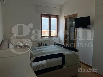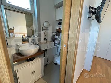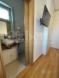 L'immobile si apre su un luminoso soggiorno con cucina open space, ambiente accogliente e ben organizzato, e dispone di due camere da letto, di cui una con bagno privato, oltre a bagno principale con antibagno, ripostiglio e deposito in mezzanina nella zona notte. Il balcone vista mare, e il terrazzo attrezzato con zona lavanderia, rendono la casa particolarmente piacevole: quest'ultimo è impreziosito da una pergola bioclimatica con alette orientabili, installabile senza necessità di autorizzazioni, ideale per vivere gli spazi esterni tutto l'anno.