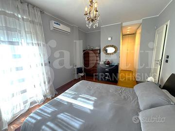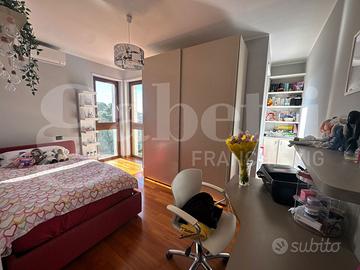 L'attico si presenta in ottime condizioni, con pavimentazione in parquet, infissi in legno con vetrocamera, riscaldamento a pavimento, climatizzatori e porta blindata.