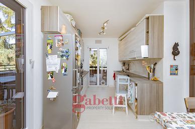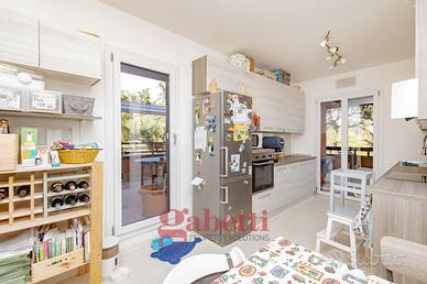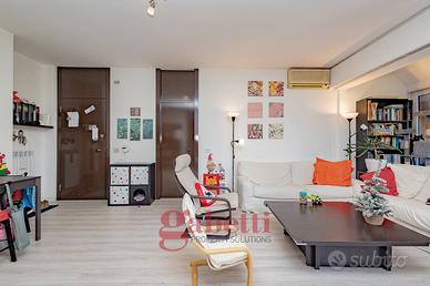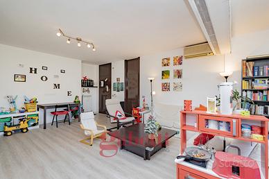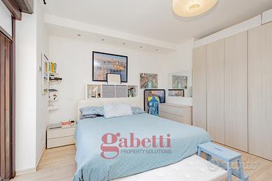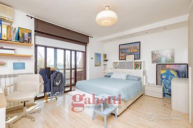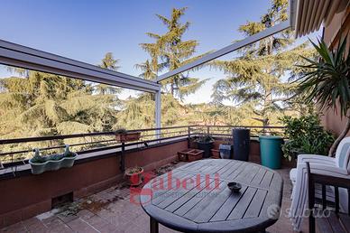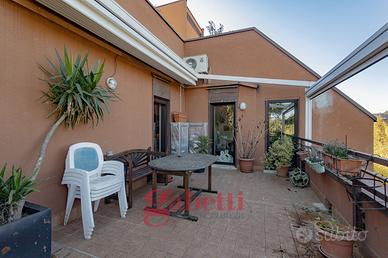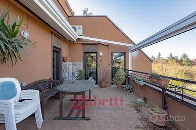 In residenza recentemente riqualificata nelle sue parti comuni, proponiamo al quinto piano di sei, splendido attico da 110mq interni così composto: ingresso, ampio soggiorno con loggia avanzata e con accesso al primo terrazzo da 25mq, cucina abitabile anch'essa con accesso al terrazzo e alla loggia, camera matrimoniale con loggia avanzata e con bagno en suite e accesso al secondo terrazzo da 25mq, cameretta camera mansardata con bagno cieco en suite e cantina.
