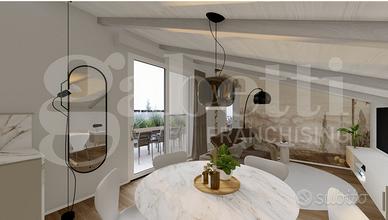 Vendesi splendido attico in villa composta da 4 unità immobiliari in fase di totale ristrutturazione. L' appartamento in questione è un ampio trilocale disposto su due livelli e così composto: al piano 1° troviamo una camera matrimoniale ed un bagno finestrato, al piano superiore ampia zona living con parete cottura a vista ed accesso al meraviglioso terrazzo di 32mq, camera singola/studio ed ulteriore bagno. Completano la proprietà un posto auto all'interno della corte e cantina. Detrazioni fiscali massime pari ad € 48mila in 10 anni generate dalla ristrutturazione totale. Capitolato di alto livello, riscaldamento e climatizzazione in pompa di calore, travi sbiancati a vista. Consegna entro fine 2026. Per informazioni ed appuntamenti rivolgersi ad Alessandro