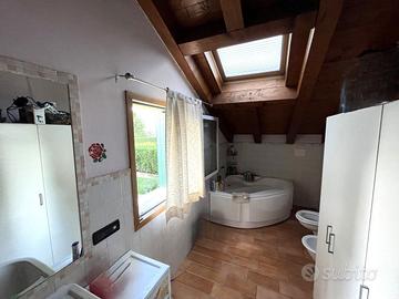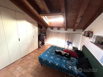 La soluzione si sviluppa al piano primo ed è caratterizzata da un ampio soggiorno di circa 50 mq con moderna scala aperta che porta ad un soppalco mansardato, cucina abitabile, tre camere da letto (due matrimoniali e una singola), due bagni finestrati con velux, lavanderia e un ripostiglio.