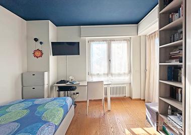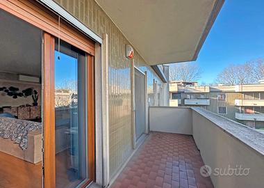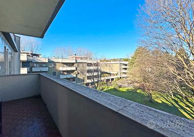 L'ingresso si apre sull'ampia zona soggiorno di circa 35 mq, straordinariamente luminosa grazie alle due porte finestre che conducono al primo balcone con affaccio interno sul verde condominiale. La zona notte del piano si sviluppa in modo armonioso: troviamo una prima camera comoda e luminosa con accesso diretto al secondo terrazzo angolare, due ulteriori camere da letto spaziose, tra cui la matrimoniale con uscita sul terrazzo, e due servizi entrambi finestrati, elegantemente rifiniti. La doppia esposizione opposta garantisce ambienti ariosi, luminosi e piacevolmente vivibili in ogni momento della giornata.